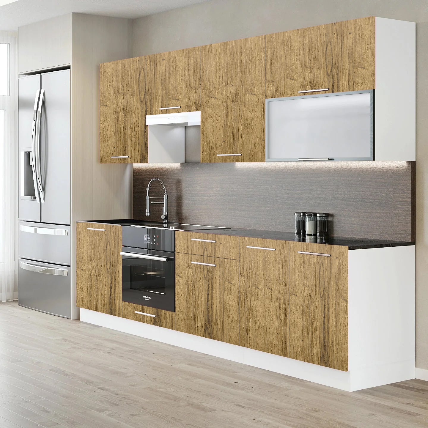 Transformez votre cuisine avec cet ensemble complet 260 cm linéaires, comprenant 4 meubles hauts & 4 meubles bas pour un rangement optimal et un style épuré.